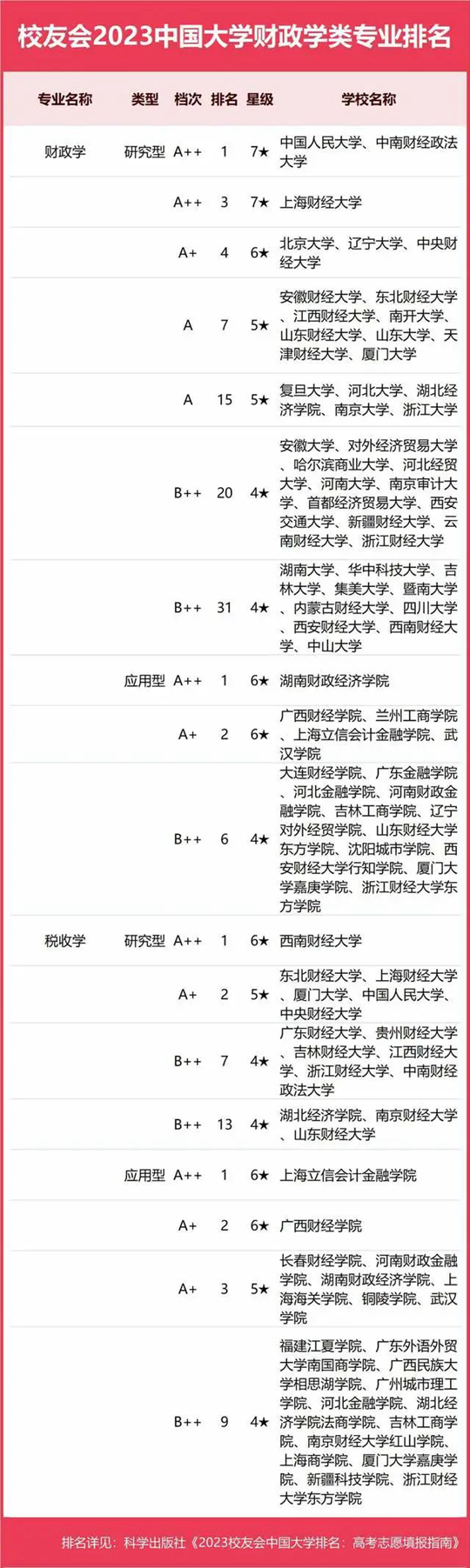 2023中國大學(xué)財(cái)政學(xué)類專業(yè)排名