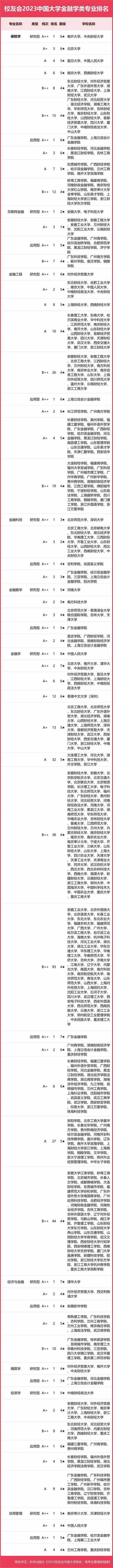 2023中國大學(xué)金融學(xué)類專業(yè)排名