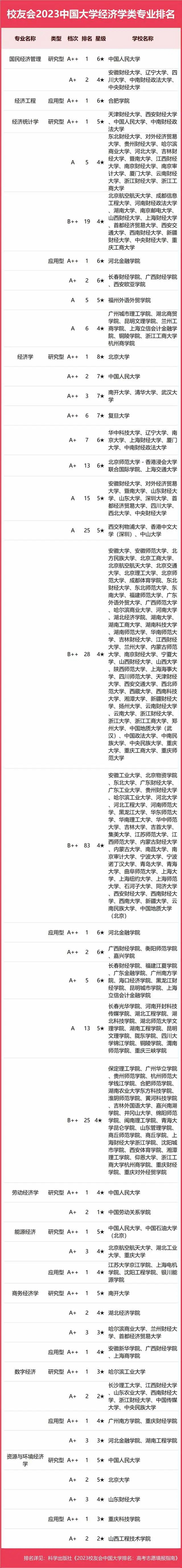 2023中國大學(xué)經(jīng)濟(jì)學(xué)類專業(yè)排名