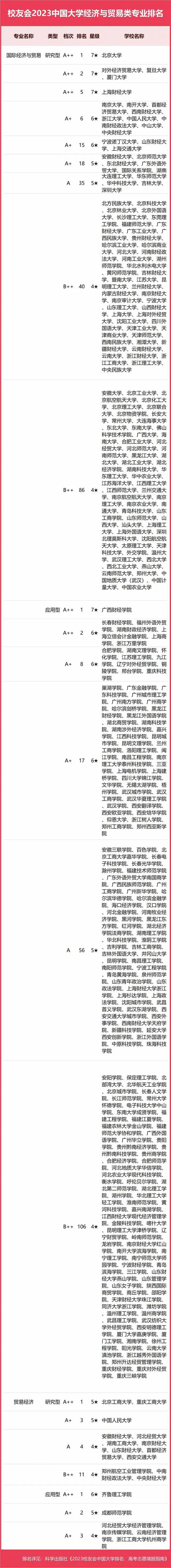 2023中國大學(xué)經(jīng)濟(jì)與貿(mào)易類專業(yè)排名