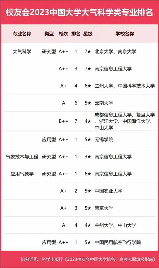 2023中國大學(xué)大氣科學(xué)類專業(yè)排名