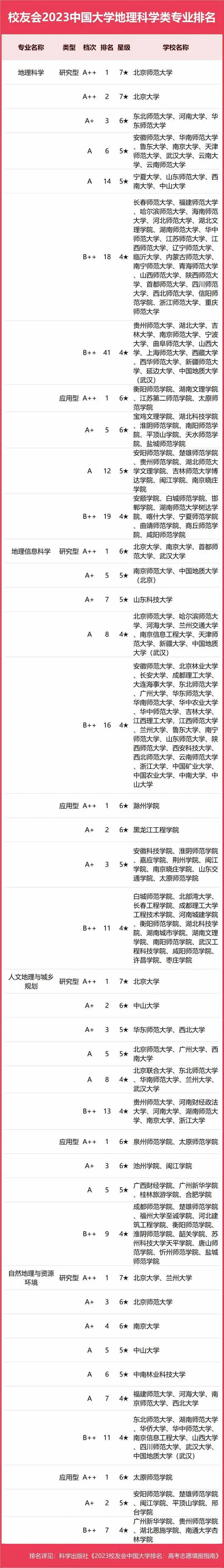 2023中國大學(xué)地理科學(xué)類專業(yè)排名