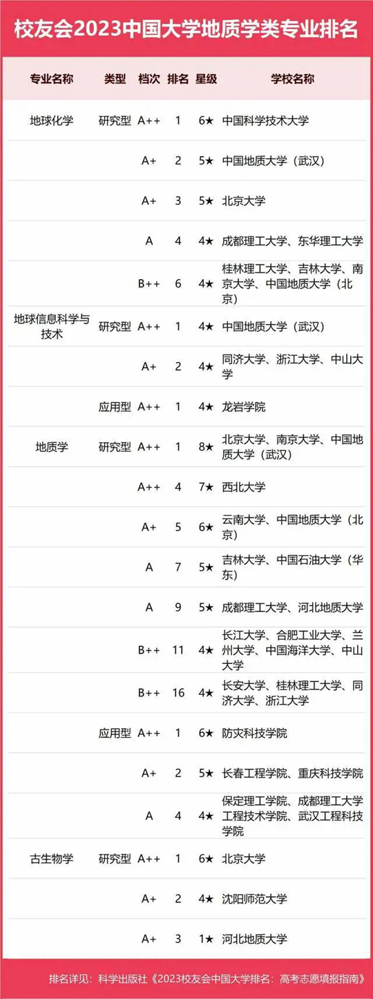 2023中國大學(xué)地質(zhì)學(xué)類專業(yè)排名