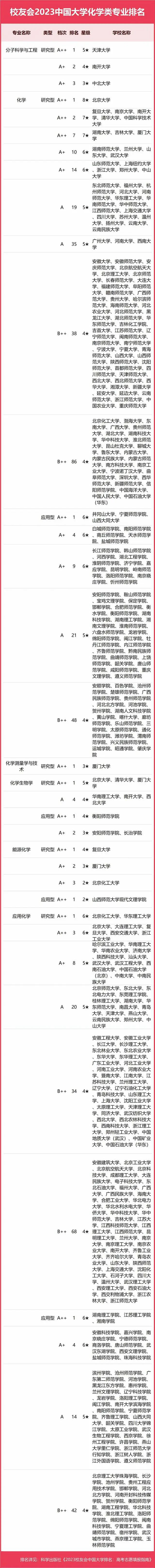 2023中國大學(xué)化學(xué)類專業(yè)排名