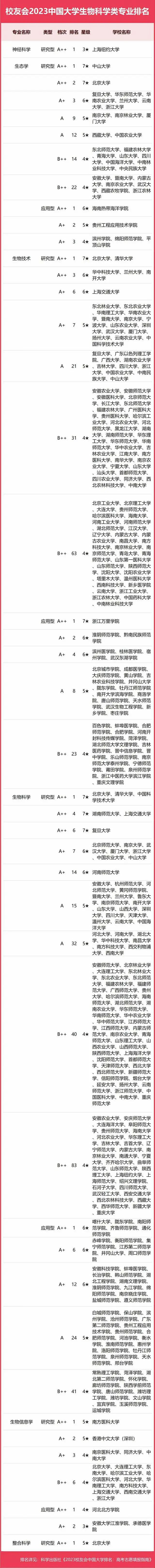 2023中國大學(xué)生物科學(xué)類專業(yè)排名
