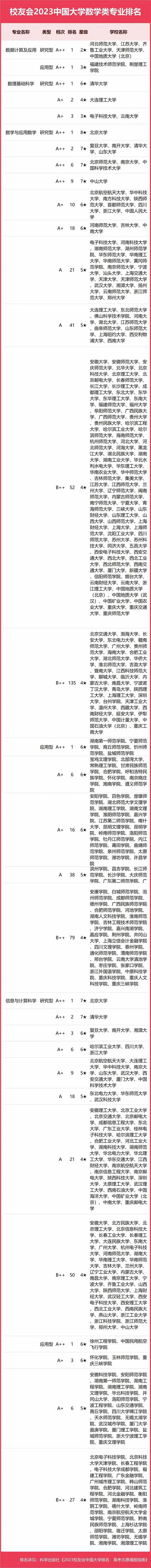 2023中國大學(xué)數(shù)學(xué)類專業(yè)排名