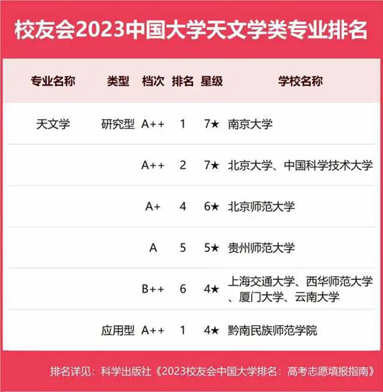 2023中國大學(xué)天文學(xué)類專業(yè)排名