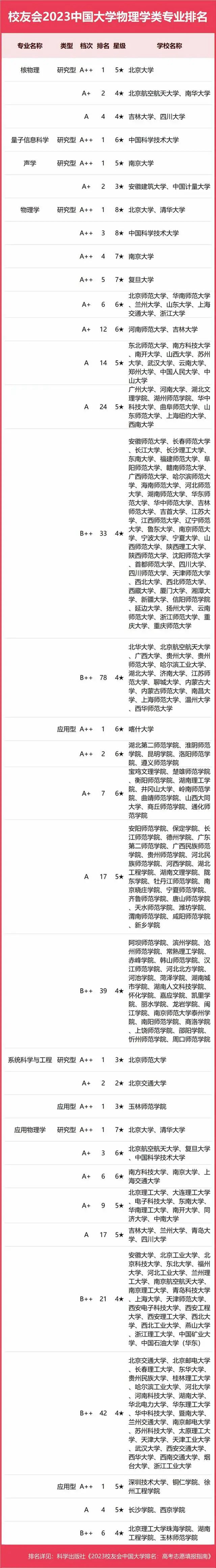 2023中國大學(xué)物理學(xué)類專業(yè)排名