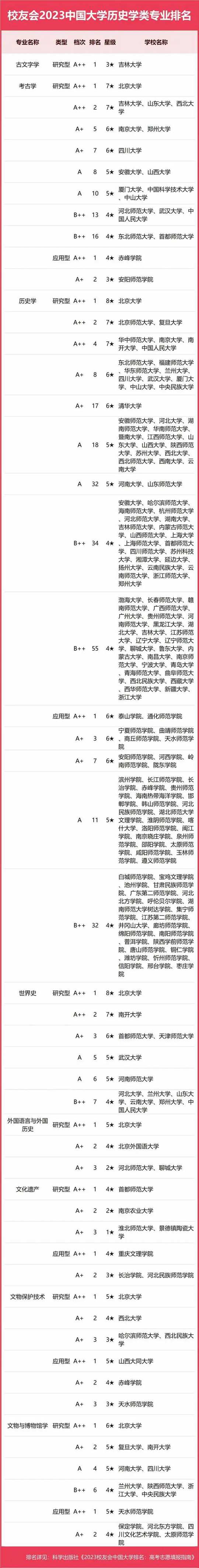 2023中國大學(xué)歷史學(xué)類專業(yè)排名