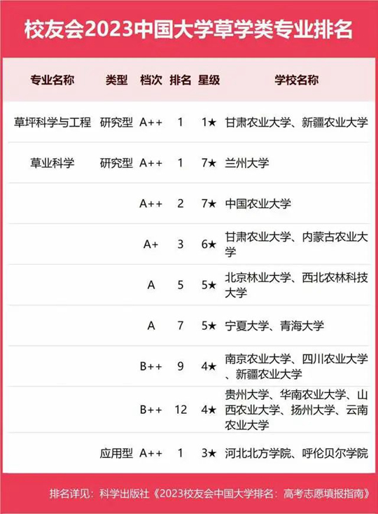 2023中國大學(xué)草學(xué)類專業(yè)排名