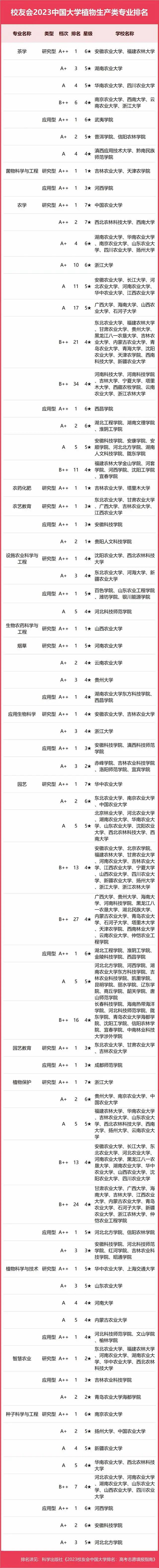 2023中國大學(xué)植物生產(chǎn)類專業(yè)排名
