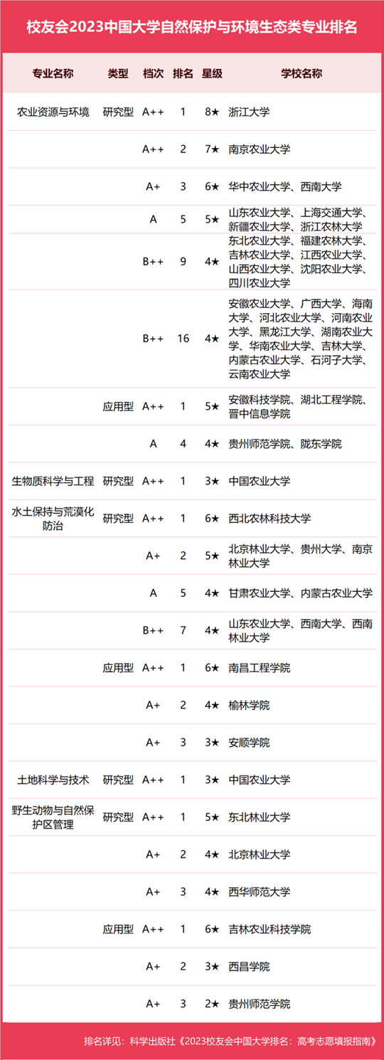 2023中國大學(xué)自然保護(hù)與環(huán)境生態(tài)類專業(yè)排名