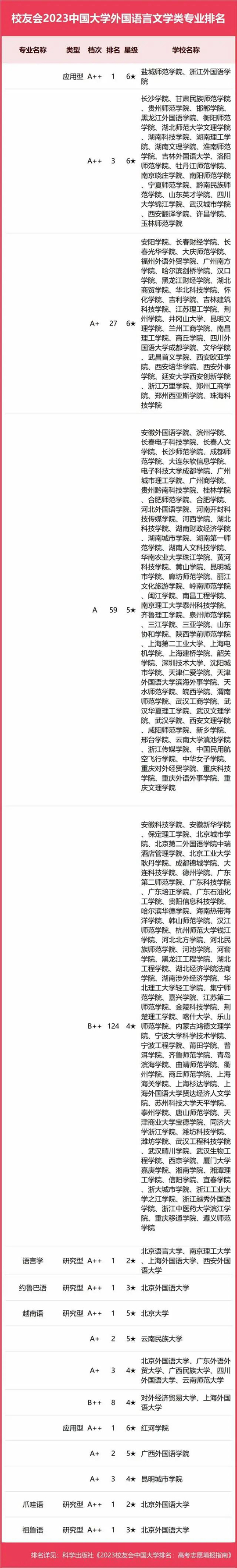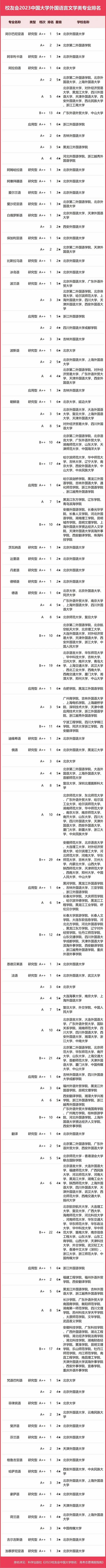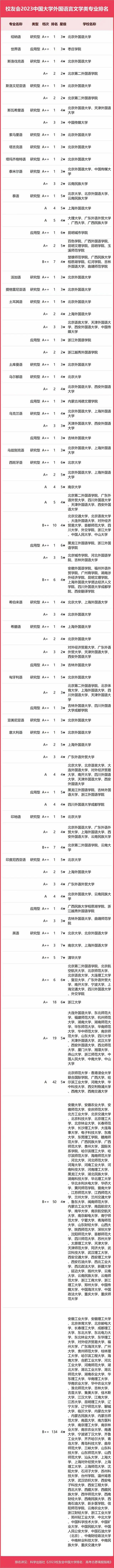 2023中國大學(xué)外國語言文學(xué)類專業(yè)排名