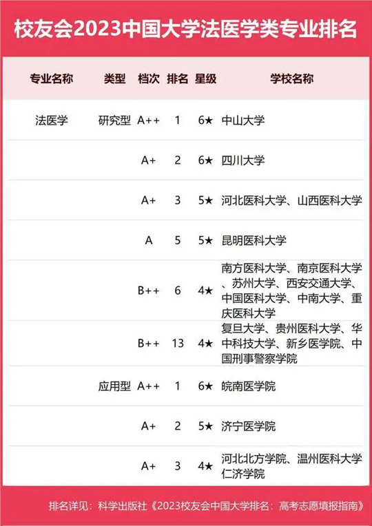2023中國大學(xué)法醫(yī)學(xué)類專業(yè)排名