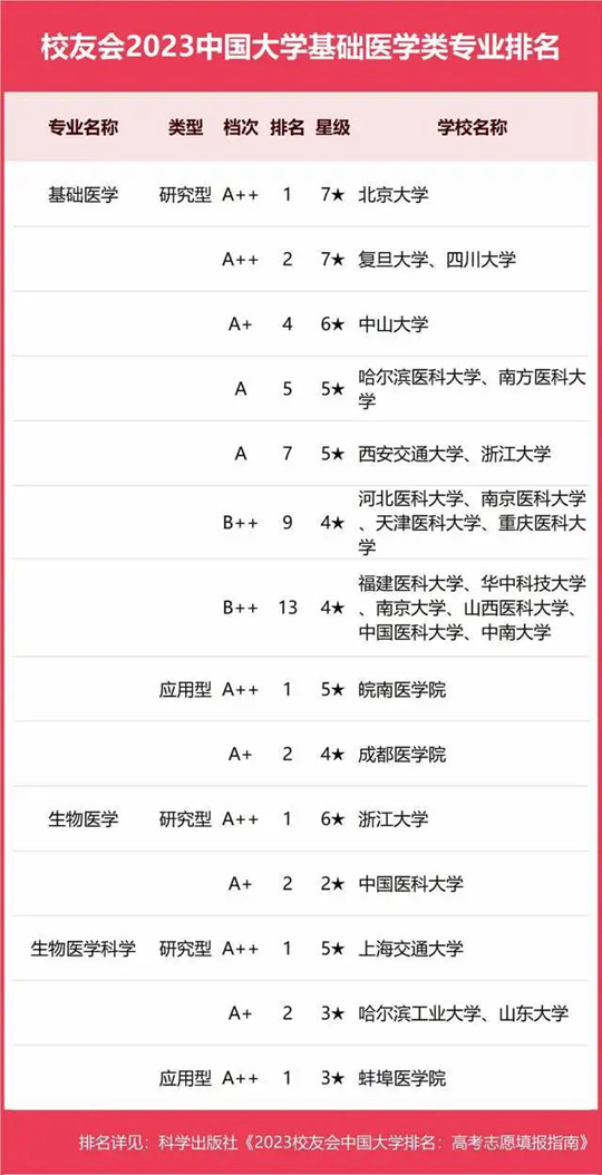 2023中國大學(xué)基礎(chǔ)醫(yī)學(xué)類專業(yè)排名