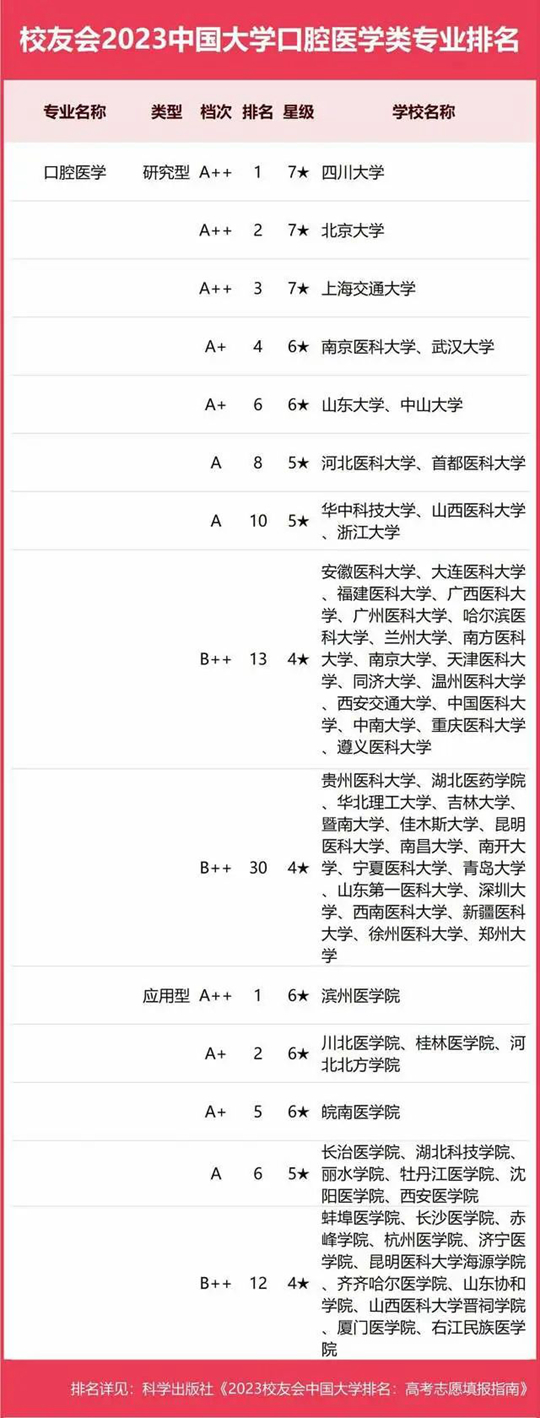 2023中國大學(xué)口腔醫(yī)學(xué)類專業(yè)排名