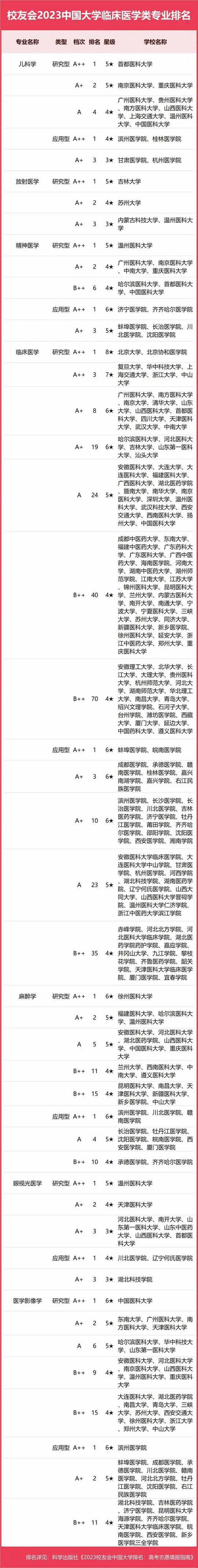 2023中國大學(xué)臨床醫(yī)學(xué)類專業(yè)排名