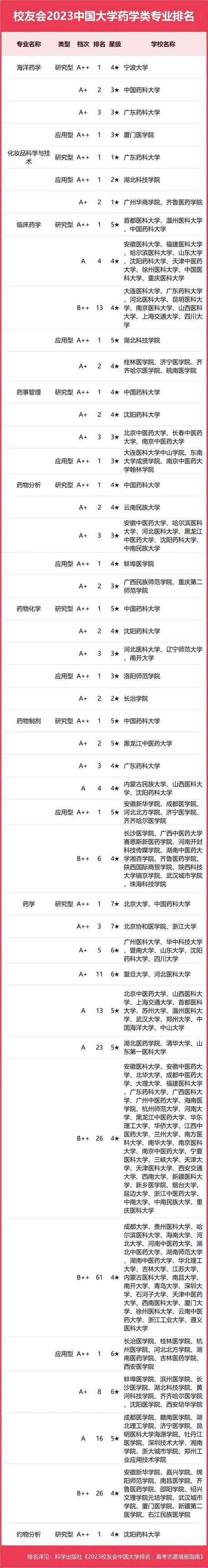 2023中國大學(xué)藥學(xué)類專業(yè)排名