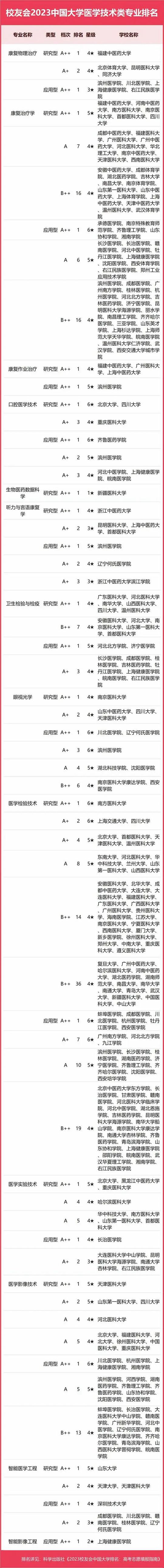 2023中國大學(xué)醫(yī)學(xué)技術(shù)類專業(yè)排名