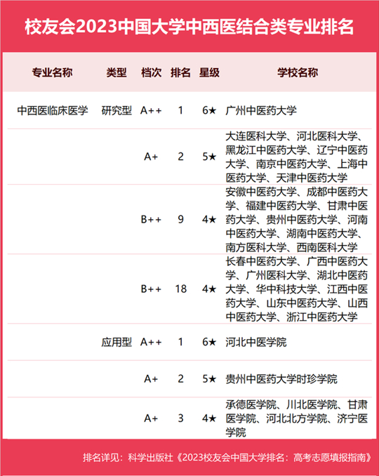 2023中國大學(xué)中西醫(yī)結(jié)合類專業(yè)排名