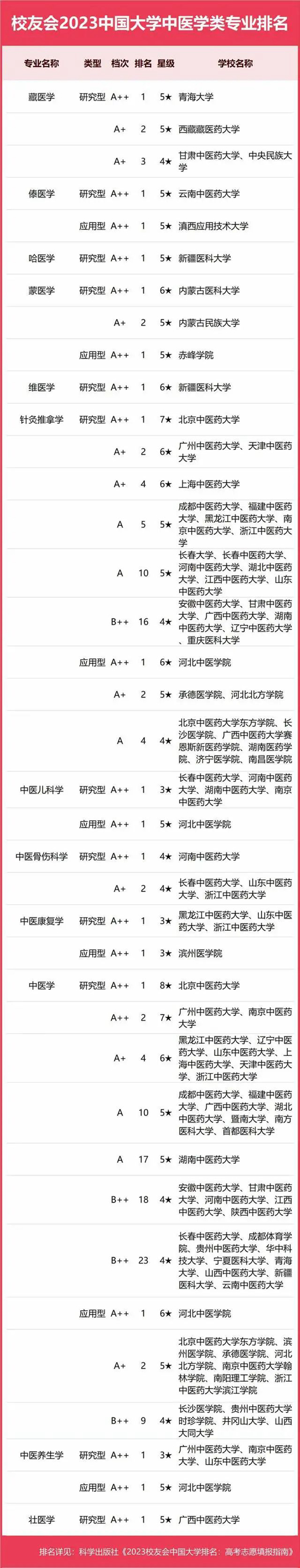 2023中國大學(xué)中醫(yī)學(xué)類專業(yè)排名