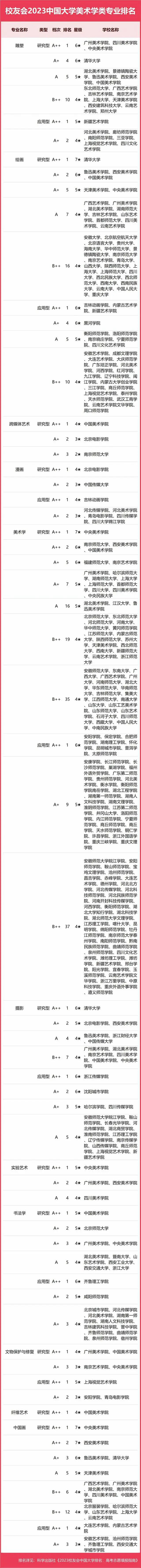 2023中國大學(xué)美術(shù)學(xué)類專業(yè)排名