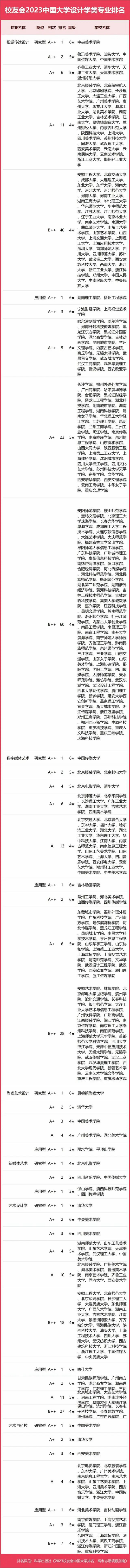 2023中國大學(xué)設(shè)計(jì)學(xué)類專業(yè)排名
