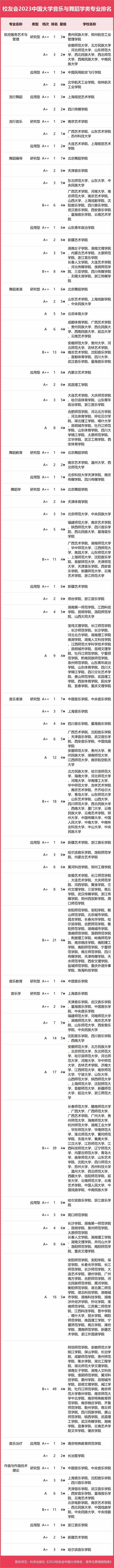 2023中國大學(xué)音樂與舞蹈學(xué)類專業(yè)排名