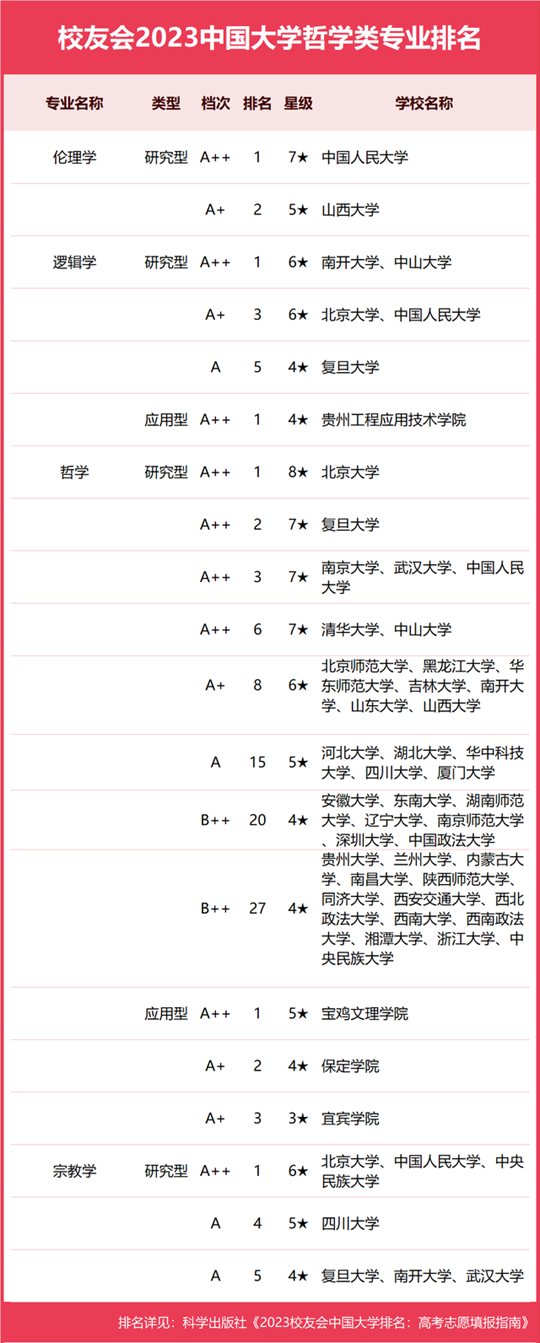 2023中國大學(xué)哲學(xué)類專業(yè)排名