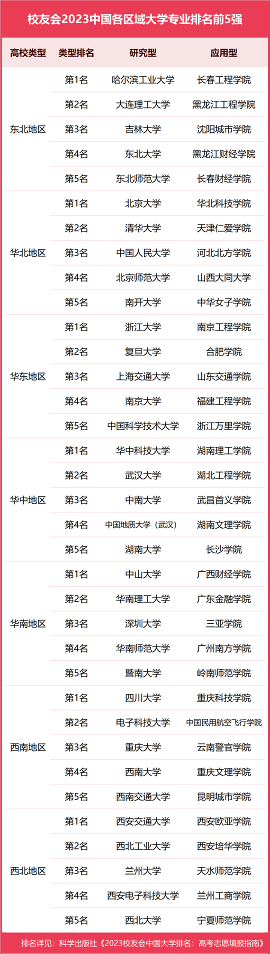 2023年全國高考即將來臨,為了給2023年全國高考考生及家長了解中國各區(qū)域大學(xué)本科專業(yè)辦學(xué)實力、辦學(xué)水平和辦學(xué)特色提供參考指南,全國第三方大學(xué)評價機(jī)構(gòu)艾瑞深校友會網(wǎng)撰寫完成、科學(xué)出版社即將出版發(fā)行的《2023校友會中國大學(xué)排名:高考志愿填報指南》最新發(fā)布校友會2023中國各區(qū)域大學(xué)專業(yè)排名。