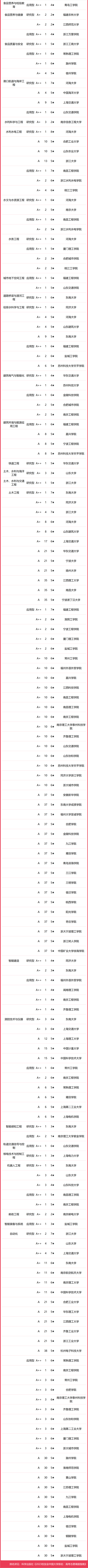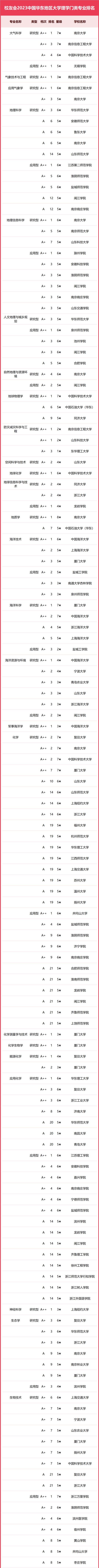 南京大學(xué)有1個(gè)中國(guó)八星級(jí)專(zhuān)業(yè)(8★),13個(gè)中國(guó)七星級(jí)專(zhuān)業(yè)(7★),17個(gè)中國(guó)六星級(jí)專(zhuān)業(yè)(6★),31個(gè)中國(guó)五星級(jí)專(zhuān)業(yè)(5★),25個(gè)中國(guó)四星級(jí)專(zhuān)業(yè)(4★),位居第4名。中國(guó)科學(xué)技術(shù)大學(xué)有1個(gè)中國(guó)八星級(jí)專(zhuān)業(yè)(8★),10個(gè)中國(guó)七星級(jí)專(zhuān)業(yè)(7★),11個(gè)中國(guó)六星級(jí)專(zhuān)業(yè)(6★),10個(gè)中國(guó)五星級(jí)專(zhuān)業(yè)(5★),7個(gè)中國(guó)四星級(jí)專(zhuān)業(yè)(4★),排名第5名。山東大學(xué)排名第6名。廈門(mén)大學(xué)排名第7名。同濟(jì)大學(xué)位列第8名。東南大學(xué)位居第9名。河海大學(xué)名列第10名。