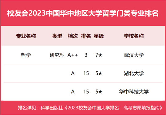 2023年全國高考即將到來,為了給2023年全國高考考生及家長選擇報考中國華中地區(qū)高校提供參考指南,全國第三方大學評價機構艾瑞深校友會網(wǎng)撰寫完成、科學出版社即將出版發(fā)行的《2023校友會中國大學排名:高考志愿填報指南》最新發(fā)布校友會2023中國華中地區(qū)大學一流專業(yè)排名、2023中國華中地區(qū)大學各門類專業(yè)排名。