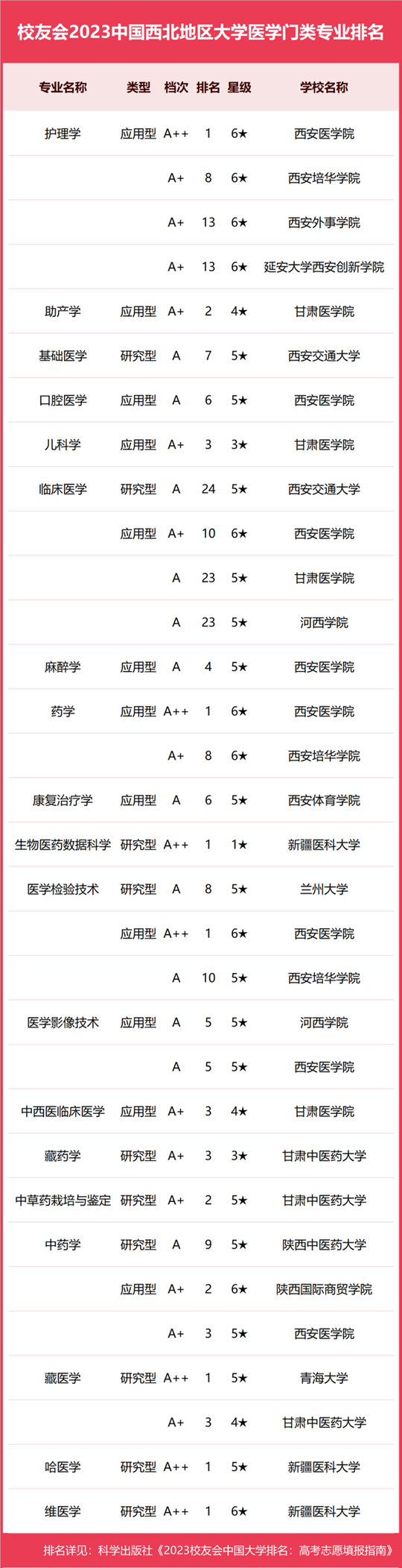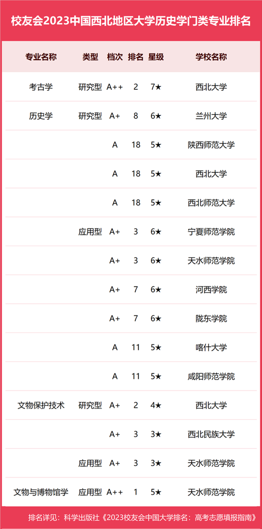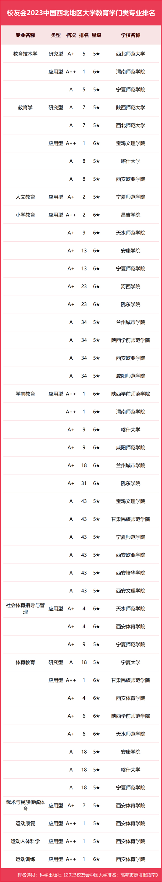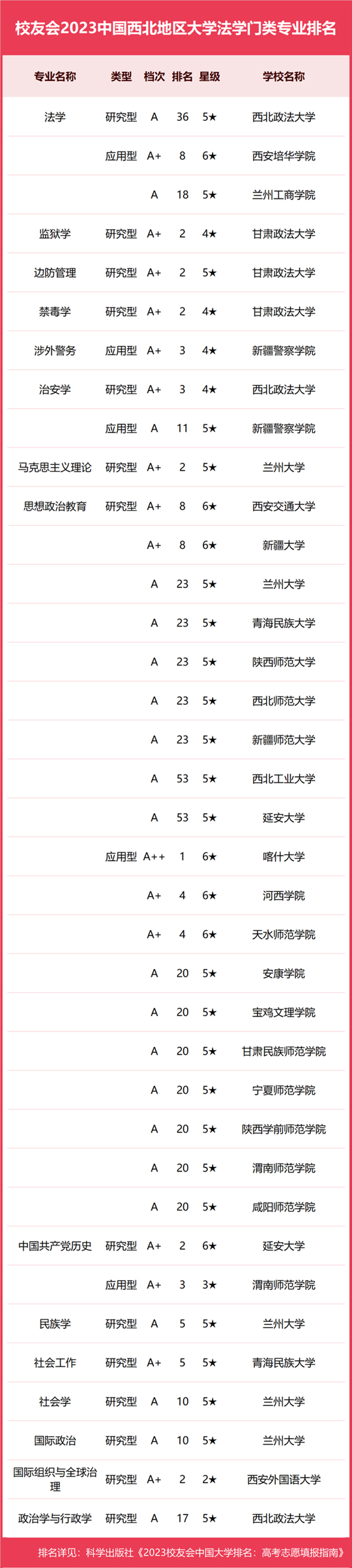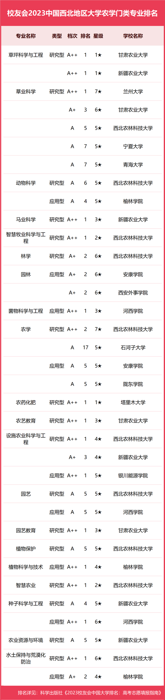 2023年全國高考即將到來,為了給2023年全國高考考生及家長選擇報考中國西北地區(qū)院校提供參考指南,全國第三方大學(xué)評價機構(gòu)艾瑞深校友會網(wǎng)撰寫完成、科學(xué)出版社即將出版發(fā)行的《2023校友會中國大學(xué)排名:高考志愿填報指南》最新發(fā)布校友會2023中國西北地區(qū)大學(xué)一流專業(yè)排名、2023中國西北地區(qū)大學(xué)各門類專業(yè)排名。