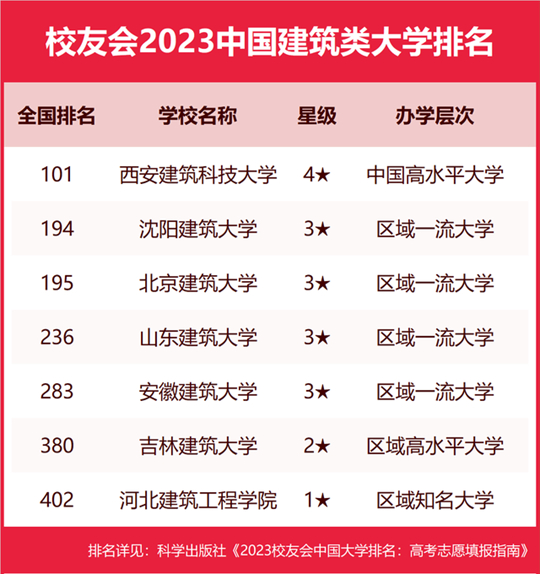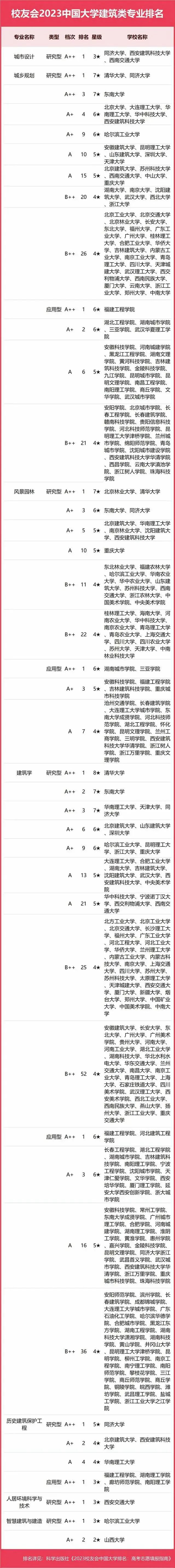 | 校友會2023中國建筑類大學(xué)排名,西安建筑科技大學(xué)、吉林建筑科技學(xué)院第一 |