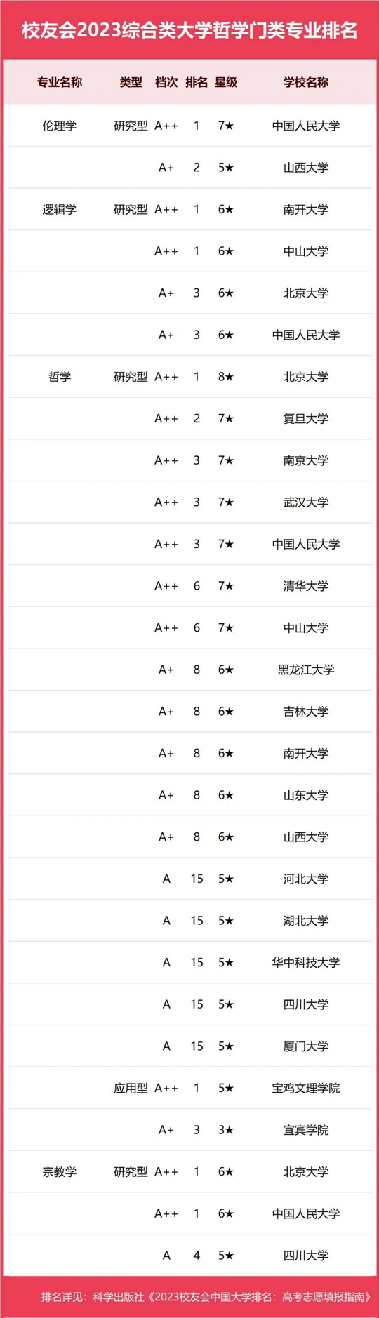 校友會(huì)2023中國(guó)大學(xué)一流專業(yè)排名依據(jù)中國(guó)大學(xué)的星級(jí)專業(yè)數(shù)(按七八星、五六星、三四星和一二星分組),采用奧運(yùn)會(huì)獎(jiǎng)牌榜的排序方法進(jìn)行排序。