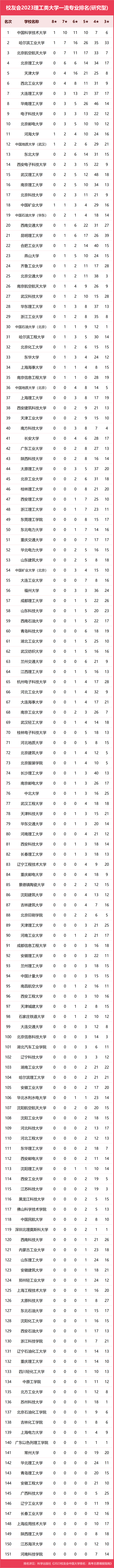 在最新校友會2023中國大學一流專業(yè)排名(研究型)中,中國科學技術大學專業(yè)實力最強,有1個中國八星級專業(yè)(8★),10個中國七星級專業(yè)(7★),11個中國六星級專業(yè)(6★),10個中國五星級專業(yè)(5★),7個中國四星級專業(yè)(4★),勇奪校友會2023中國理工類大學一流專業(yè)排名(研究型)第一。哈爾濱工業(yè)大學有1個中國八星級專業(yè)(8★),7個中國七星級專業(yè)(7★),16個中國六星級專業(yè)(6★),26個中國五星級專業(yè)(5★),35個中國四星級專業(yè)(4★),高居第2名。北京航空航天大學有7個中國七星級專業(yè)(7★),11個中國六星級專業(yè)(6★),17個中國五星級專業(yè)(5★),33個中國四星級專業(yè)(4★),名列第3名。
