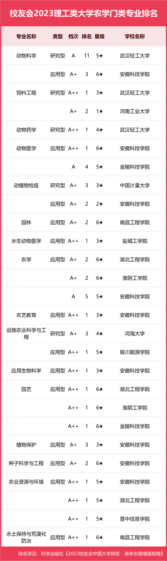 校友會中國大學一流專業(yè)排名首發(fā)于2015年,至今已有9年的歷史,是目前中國參評高校數(shù)量最多和參評專業(yè)規(guī)模最大的中國大學本科專業(yè)排名。校友會中國大學專業(yè)排名堅持實施分類分級分檔評價,按“研究型”和“應用型”2個類型進行評價;2022年起,在校友會中國大學專業(yè)星級評價基礎上,將中國大學專業(yè)分為A++、A+、A、B++、B+、B、C和D等8個檔次進行評價。