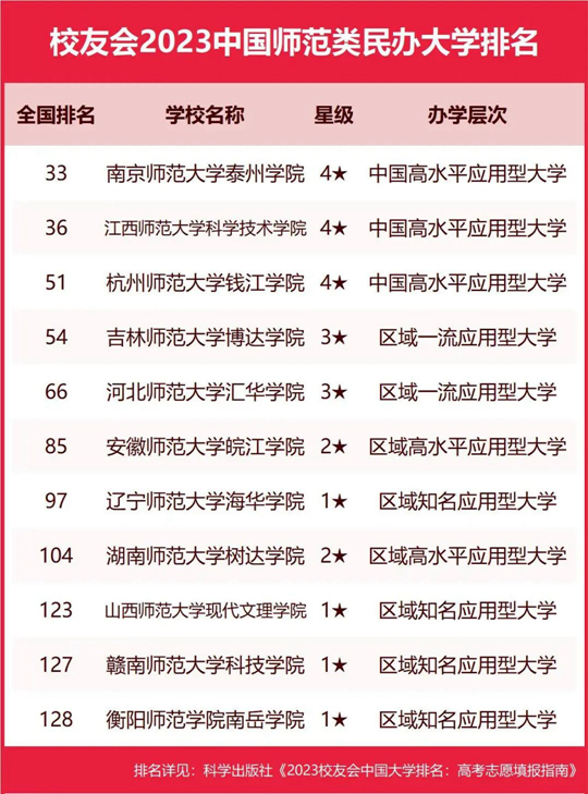 南京師范大學(xué)泰州學(xué)院奪得校友會2023中國師范類民辦大學(xué)排名榜首