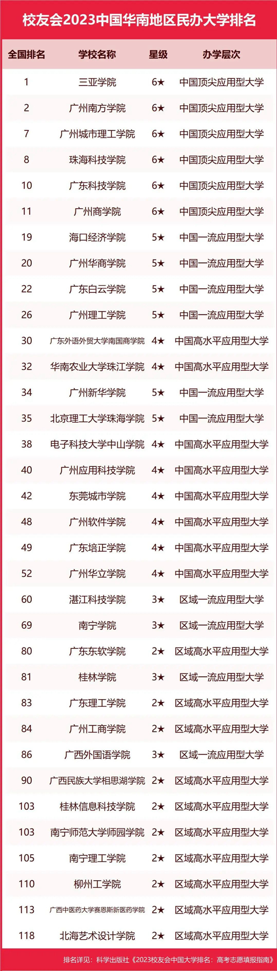 | 校友會(huì)2023中國(guó)華南地區(qū)大學(xué)排名,中山大學(xué)、三亞學(xué)院第一 |
