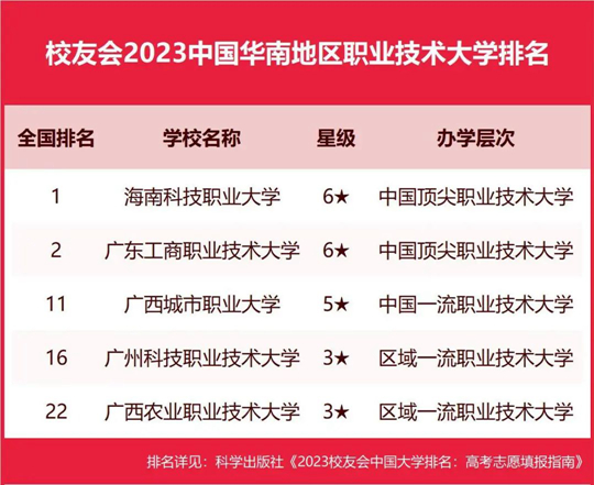 海南科技職業(yè)大學(xué)勇奪校友會(huì)2023中國(guó)華南地區(qū)職業(yè)技術(shù)大學(xué)排名首位