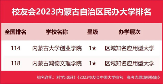 | 校友會2023內蒙古自治區(qū)大學排名,內蒙古大學、內蒙古大學創(chuàng)業(yè)學院第一 |