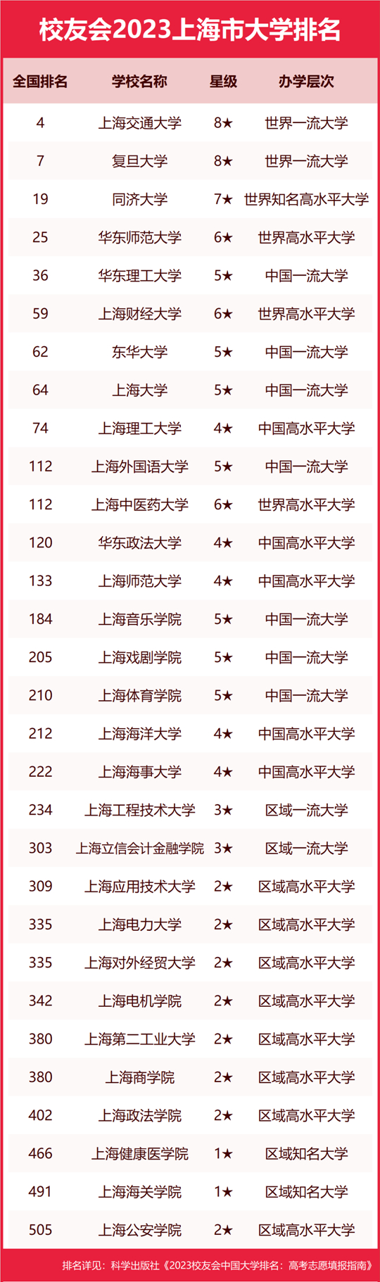 為了給2023年全國高考考生和家長選擇填報上海市院校提供報考指南,2023年4月6日,全國第三方大學(xué)評價機構(gòu)艾瑞深校友會網(wǎng)撰寫完成、科學(xué)出版社即將出版發(fā)行的《2023校友會中國大學(xué)排名:高考志愿填報指南》最新發(fā)布校友會2023上海市大學(xué)排名。