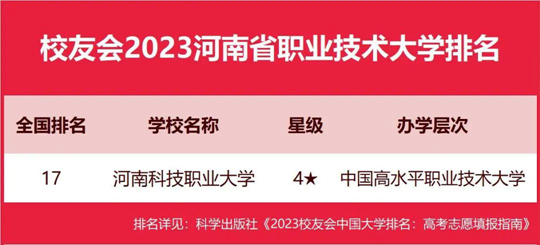河南科技職業(yè)大學(xué)高居校友會2023河南省職業(yè)技術(shù)大學(xué)排名榜首