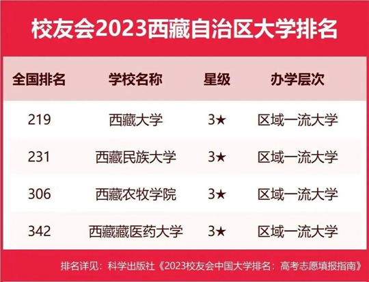 | 校友會(huì)2023西藏自治區(qū)大學(xué)排名,西藏大學(xué)、西藏民族大學(xué)等第一 |