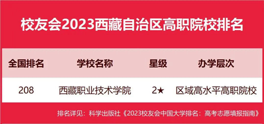 西藏職業(yè)技術(shù)學(xué)院位居校友會(huì)2023西藏自治區(qū)高職院校排名第一