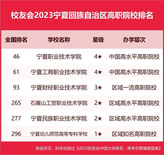寧夏職業(yè)技術(shù)學(xué)院勇奪校友會2023寧夏回族自治區(qū)高職院校排名首位