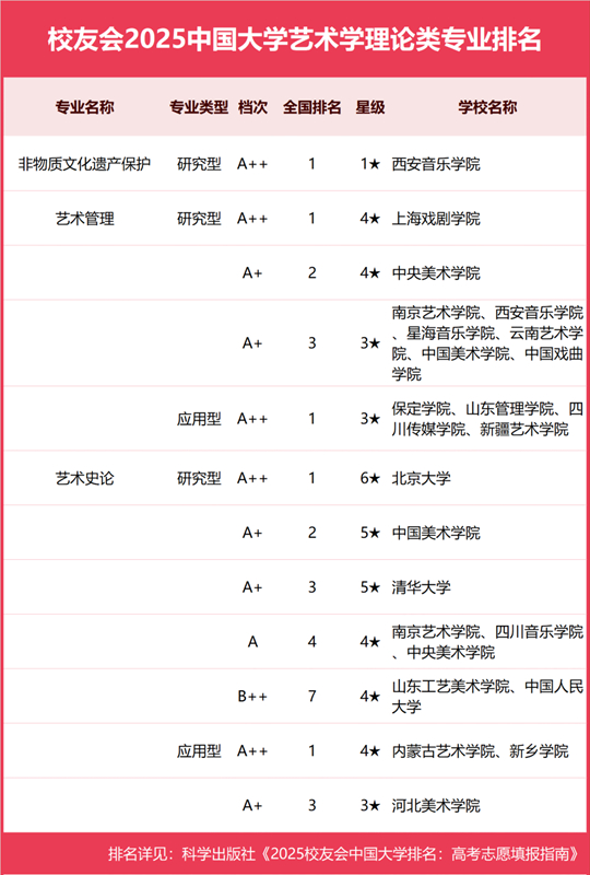 校友會2025中國大學(xué)藝術(shù)學(xué)理論類專業(yè)排名(應(yīng)用型)