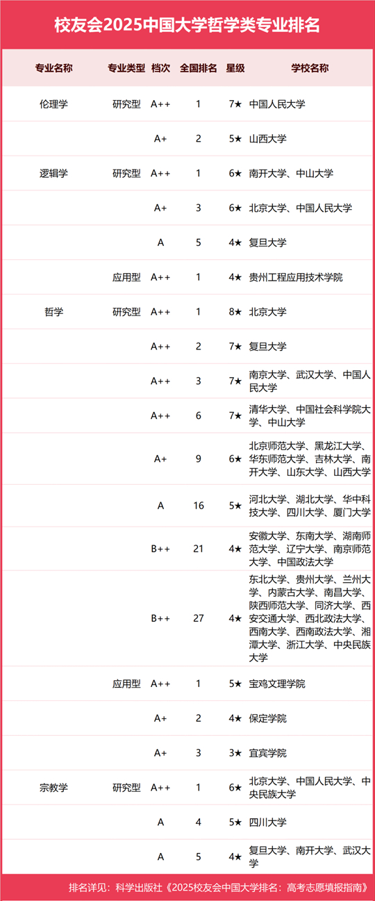 校友會2025中國大學(xué)哲學(xué)類專業(yè)排名(應(yīng)用型)