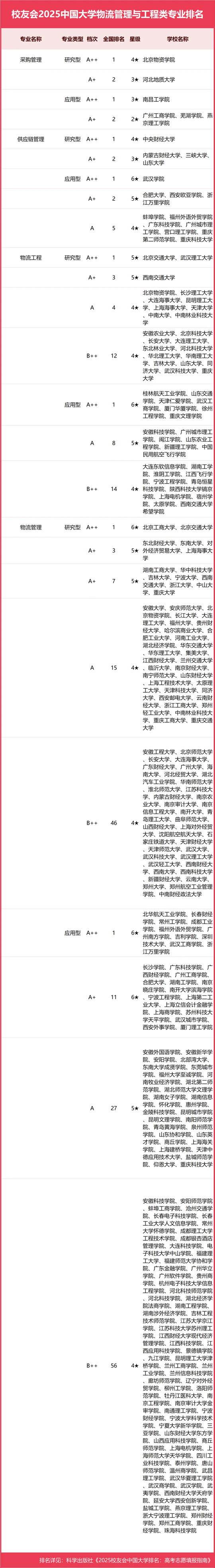 校友會2025中國大學(xué)物流管理與工程類專業(yè)排名(研究型)