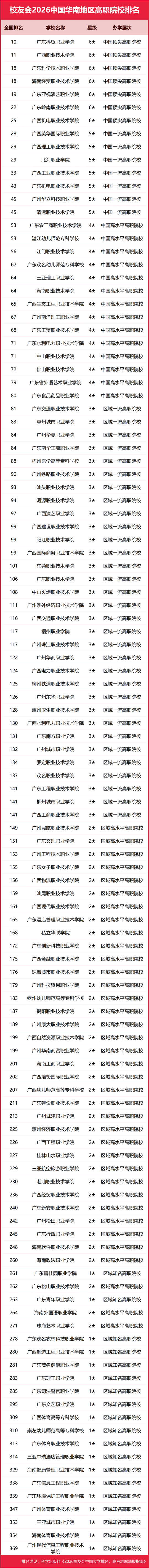 | 校友會2026中國華南地區(qū)大學(xué)排名,中山大學(xué)、三亞學(xué)院、廣州南方學(xué)院、深圳職業(yè)技術(shù)大學(xué)、廣東科貿(mào)職業(yè)學(xué)院第一 |